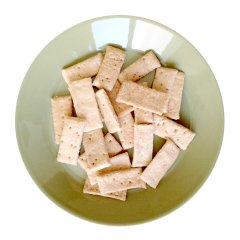 | 成分値 | 粗たんぱく質17.1%以上/粗脂肪3.8%以上/粗灰分2.2%以下/粗繊維1.0%未満/水分2.5%以下/エネルギー350kcal/100g |